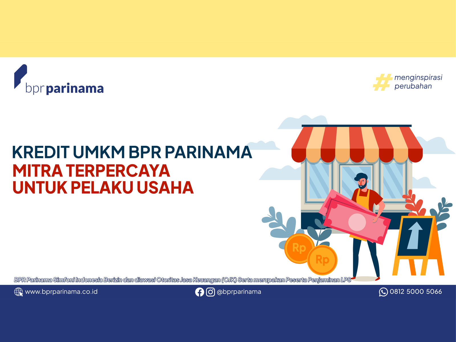 Kredit UMKM BPR Parinama merupakan solusi pembiayaan yang tepat bagi pelaku usaha yang ingin mengembangkan bisnisnya. Dengan proses yang mudah, pelayanan yang ramah, serta pendekatan yang memahami kebutuhan nasabah, BPR Parinama hadir sebagai mitra terpercaya bagi UMKM.