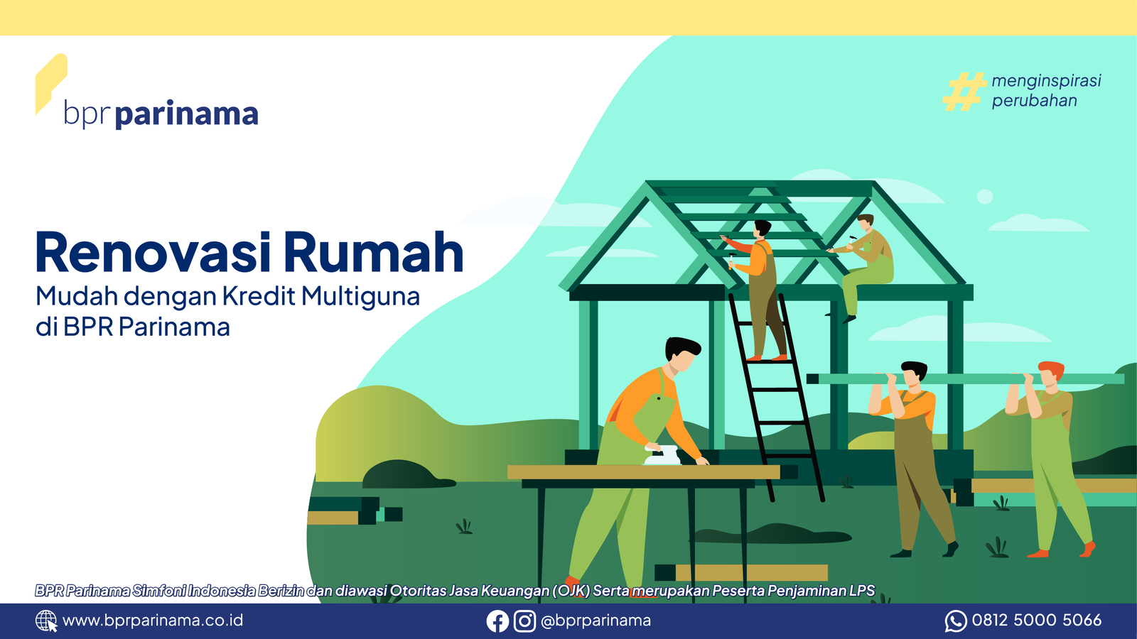 Renovasi rumah tidak harus menjadi sumber stres finansial. Dengan Kredit Multiguna BPR Parinama, kebutuhan renovasi dapat terpenuhi secara lebih mudah, terencana, dan aman. Rumah menjadi lebih nyaman, sementara kondisi keuangan tetap terjaga.